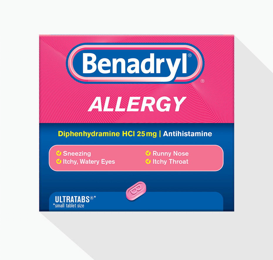 Use BENADRYL® Allergy ULTRATABS® Tablets with 25 mg of diphenhydramine HCI, antihistamine, for effective relief from symptoms related to hay fever, upper respiratory allergy, or cold symptoms.